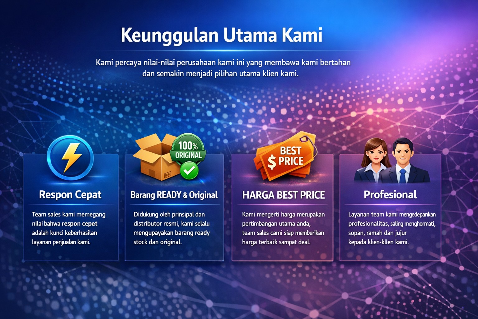 Didukung oleh prinsipal dan distributor resmi, kami selalu mengupayakan barang ready stock dan original.